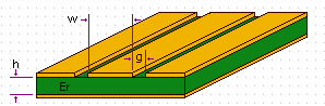 *The structure may propagate in 3 modes: coplanar waveguide, coupled slot lines and microstrip. To avoid microstrip modes, have h >> (w+2g) and extend component side ground away from the trace by > (w+2g).